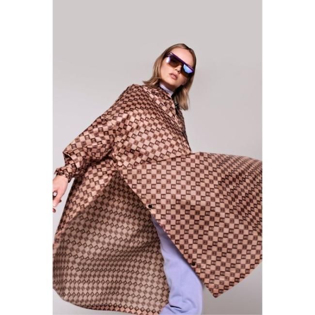 独自のデザインは従来のポンチョのイメージを覆し、ファッショナブルなレインウェアへと進化させる事に成功しています。